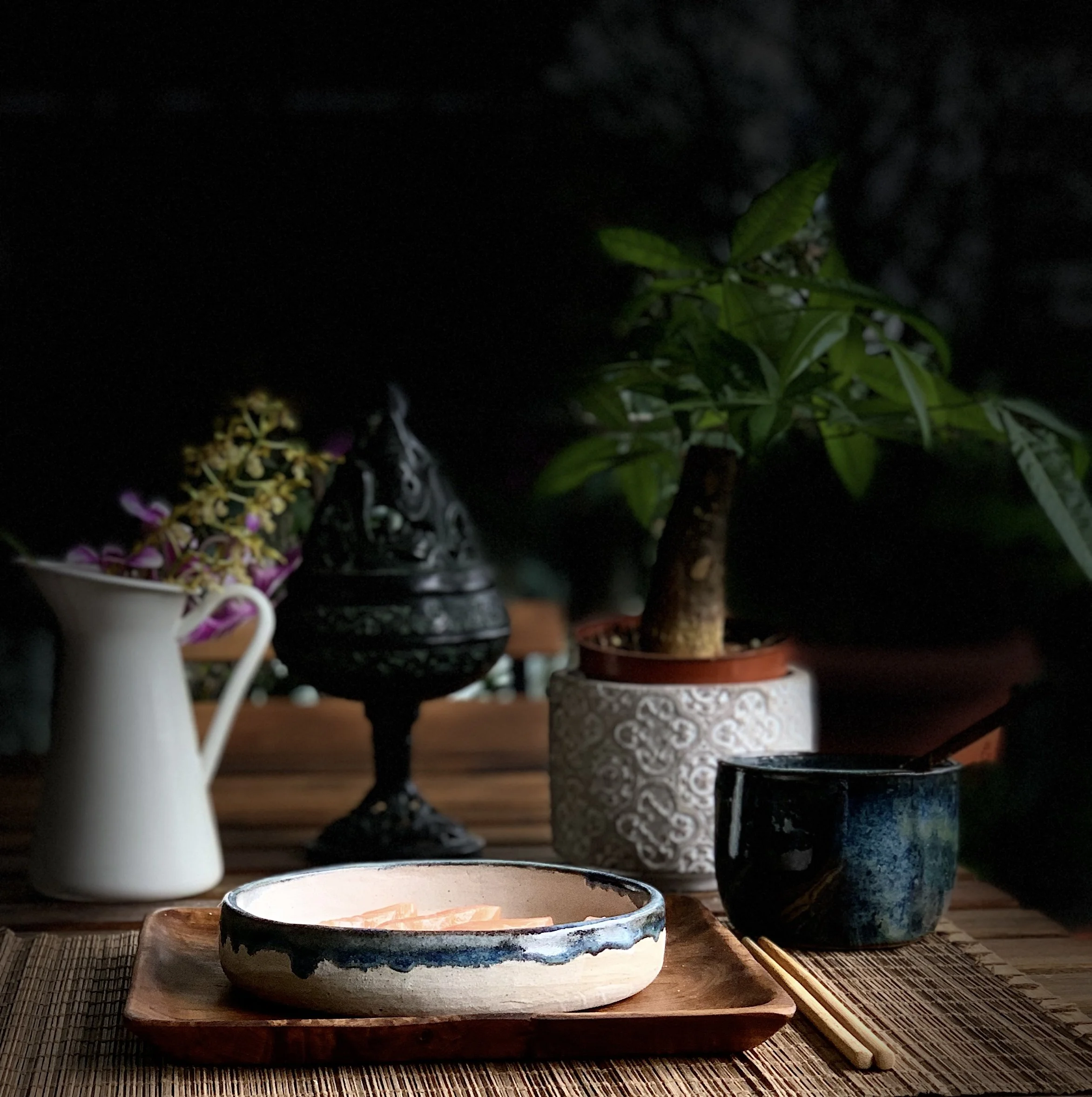 Due to the spontaneous nature of the handbuild work, each dinner bowl will bear its own marking in a completely unique way.